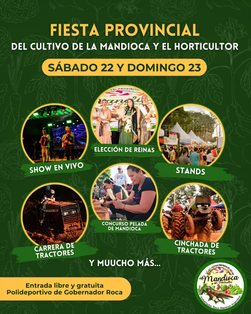 Para esta edición 2025, la fiesta provincial del cultivo de la mandioca y el horticultor ofrecerá distintos stands de emprendedores, empresas afines a la producción, concurso de pelada de mandioca, cinchada de tractores ,gran elección de reina, shows en vivo, carrera de tractores, y el plato fuerte del sábado 22 será la presentación del DJ más reconocido de la provincia de Misiones, Guillermo Atencio.