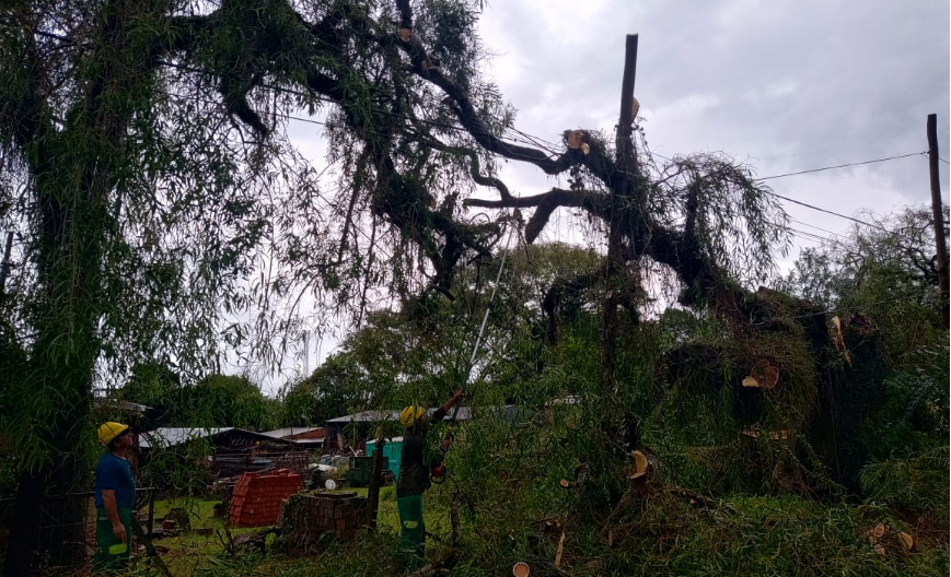 Uno de los episodios más relevantes ocurrió sobre avenida Zapiola, entre López y Planes y Blas Parera, donde cerca de las 16 un árbol cayó sobre la calzada y bloqueó parcialmente la circulación. Además, cables desprendidos complicaron ambos sentidos de tránsito, lo que motivó un operativo conjunto entre personal municipal, la empresa de energía EMSA y la Policía para despejar la zona y evitar incidentes.